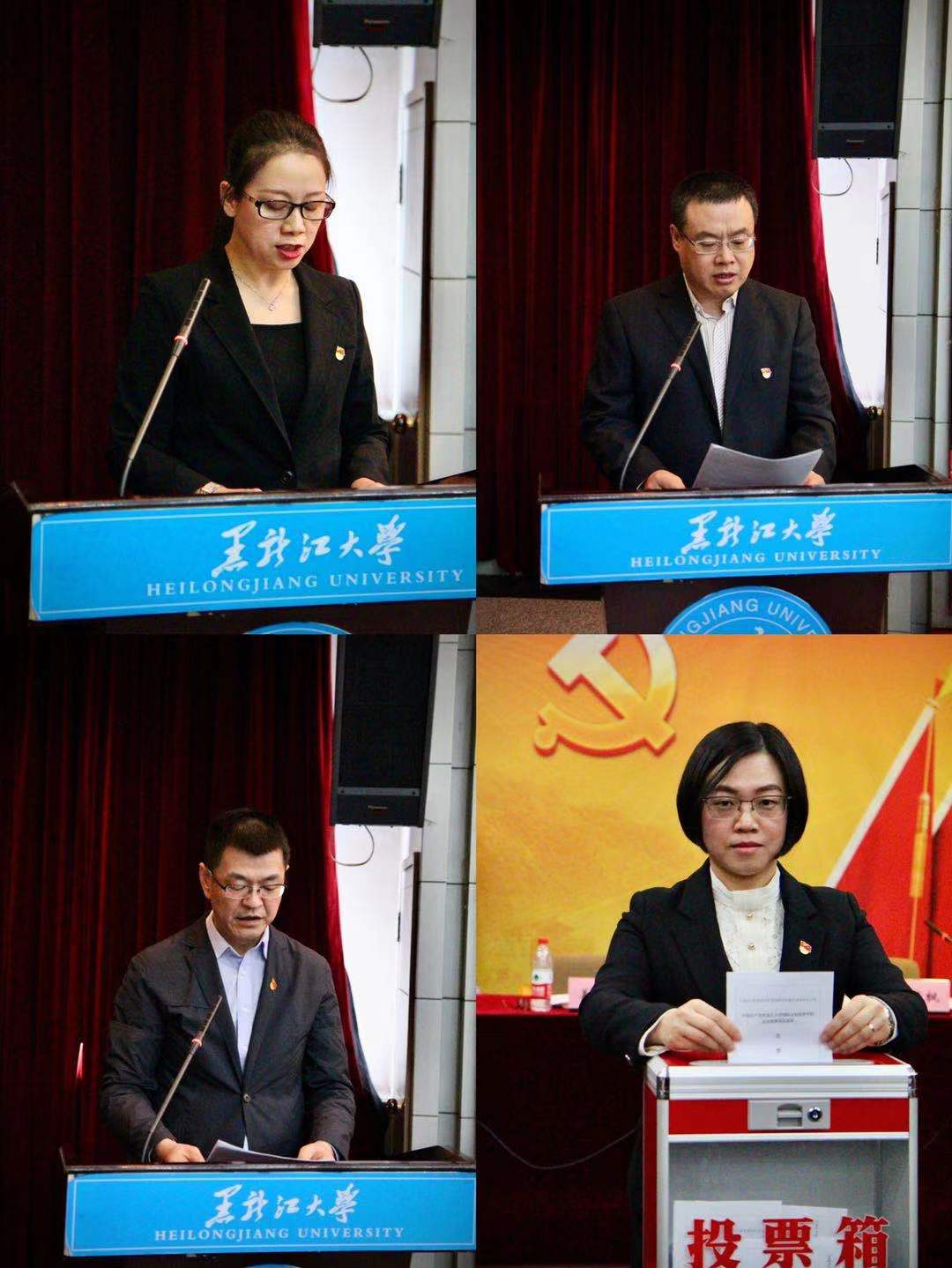 随后,学院党总支副书记邓洪健同志宣读《中国共产党黑龙江大学国际文化教育学院党员大会选举办法(草案)》,会议表决通过了选举办法(草案)及推选的监票人、计票人名单。接着,国际合作与交流处副处长关源同志介绍中国共产党黑龙江大学国际文化教育学院总支部委员会委员候选人预备人选。