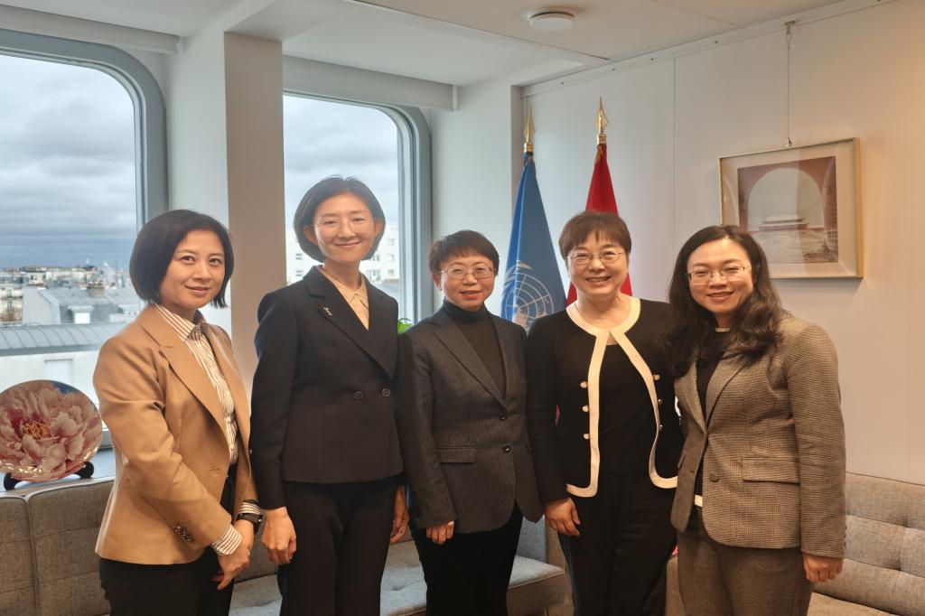 在法国巴黎,代表团首站拜访了中国常驻联合国教科文组织(UNESCO)代表团大使衔代表、我校杰出校友杨新育。王敬波校长介绍了黑龙江大学在俄语语言文学、东北亚区域研究、文化遗产保护、极地水利等领域的学科优势,表达了申请设立联合国教科文组织教席(UNESCO Chair)的积极意愿,希望依托该高端平台,汇聚国际智力资源,开展前沿课题研究,为全球知识共享与能力建设贡献黑大智慧。大使对此构想给予高度评价,并提供了专业的指导与路径建议。双方还围绕如何进一步发挥学校自身区位与学科特色、承接教科文组织及其相关机构在华开展的合作项目与活动等议题深入交换意见。