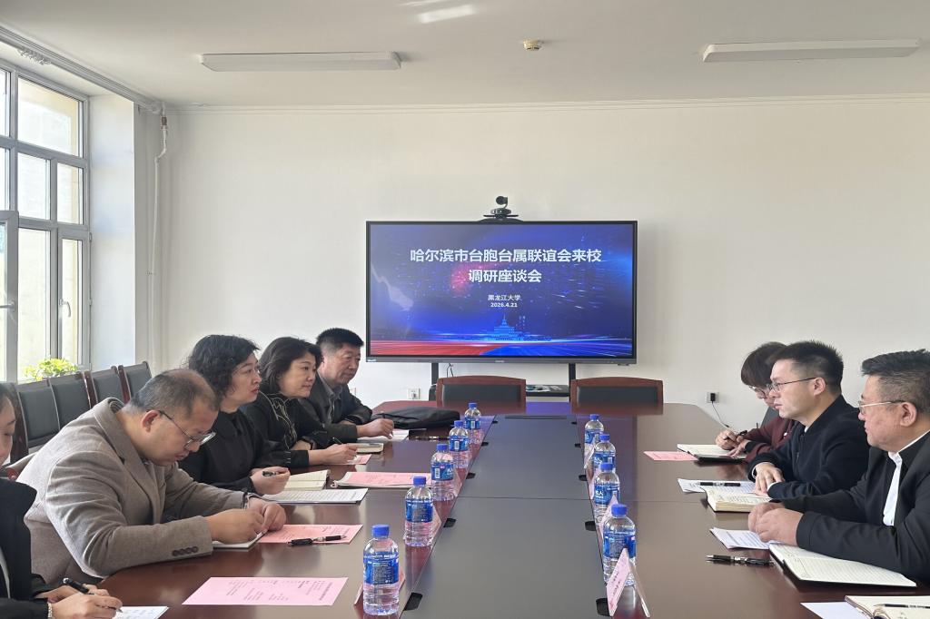 4月22日上午,哈尔滨市台胞台属联谊会(以下简称“市台联”)秘书长宋滨鹤一行来我校调研,并在主楼A518会议室座谈。校党委常委、统战部部长林强,国际合作与交流处副处长李永宝,法学院副院长邓齐滨及相关人员出席座谈会。会议由李永宝主持。